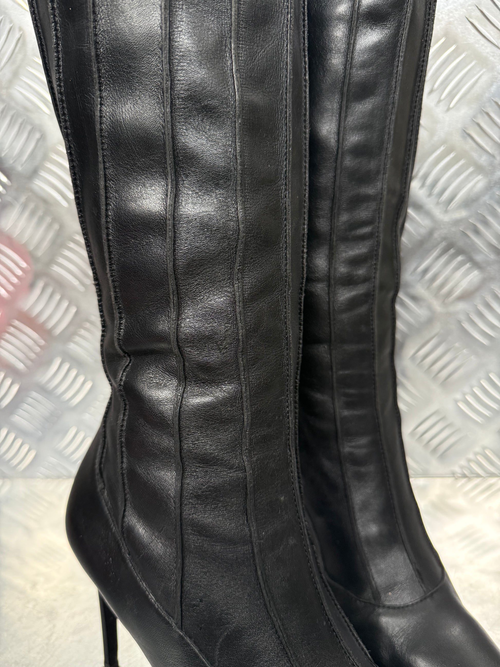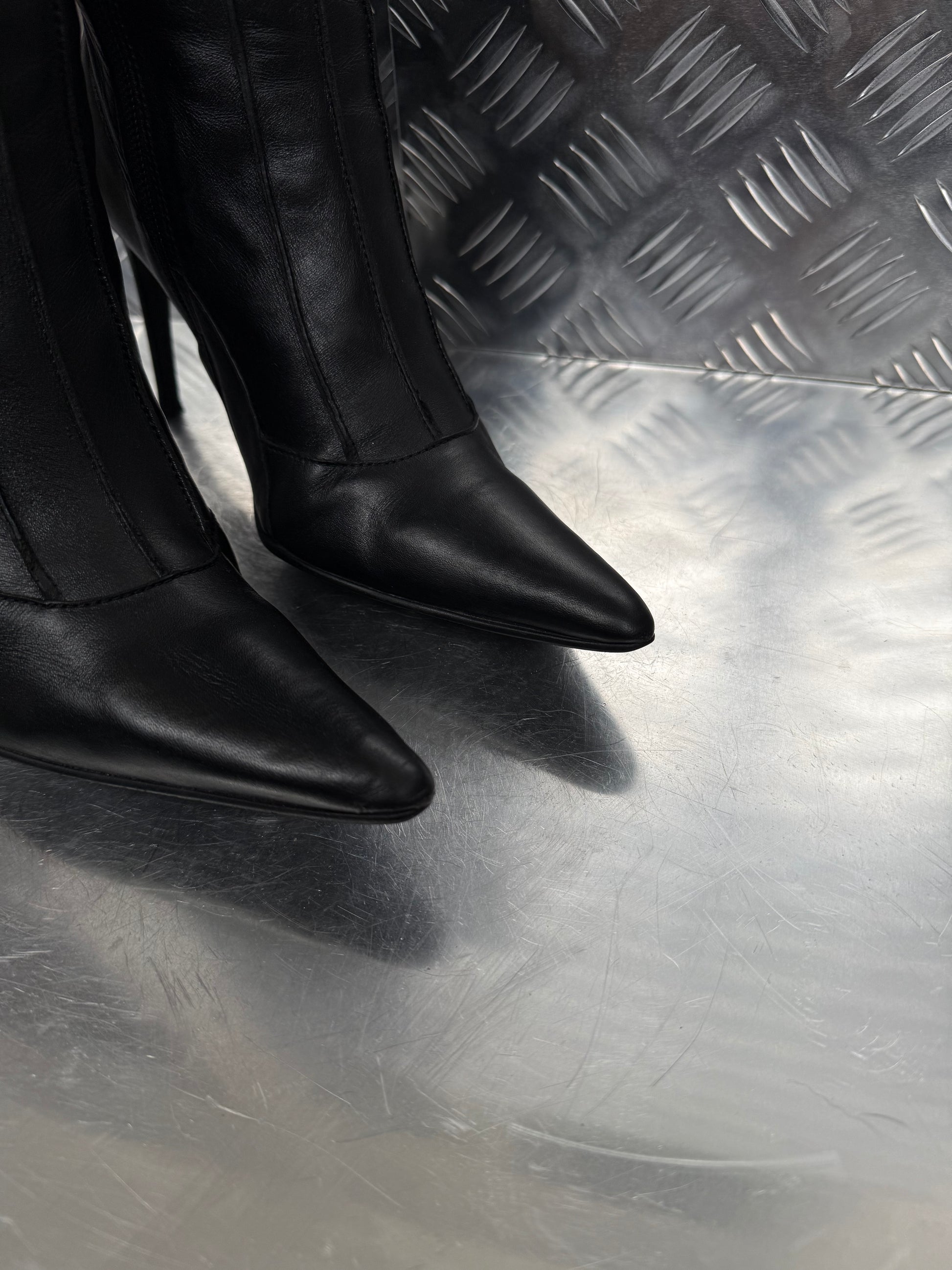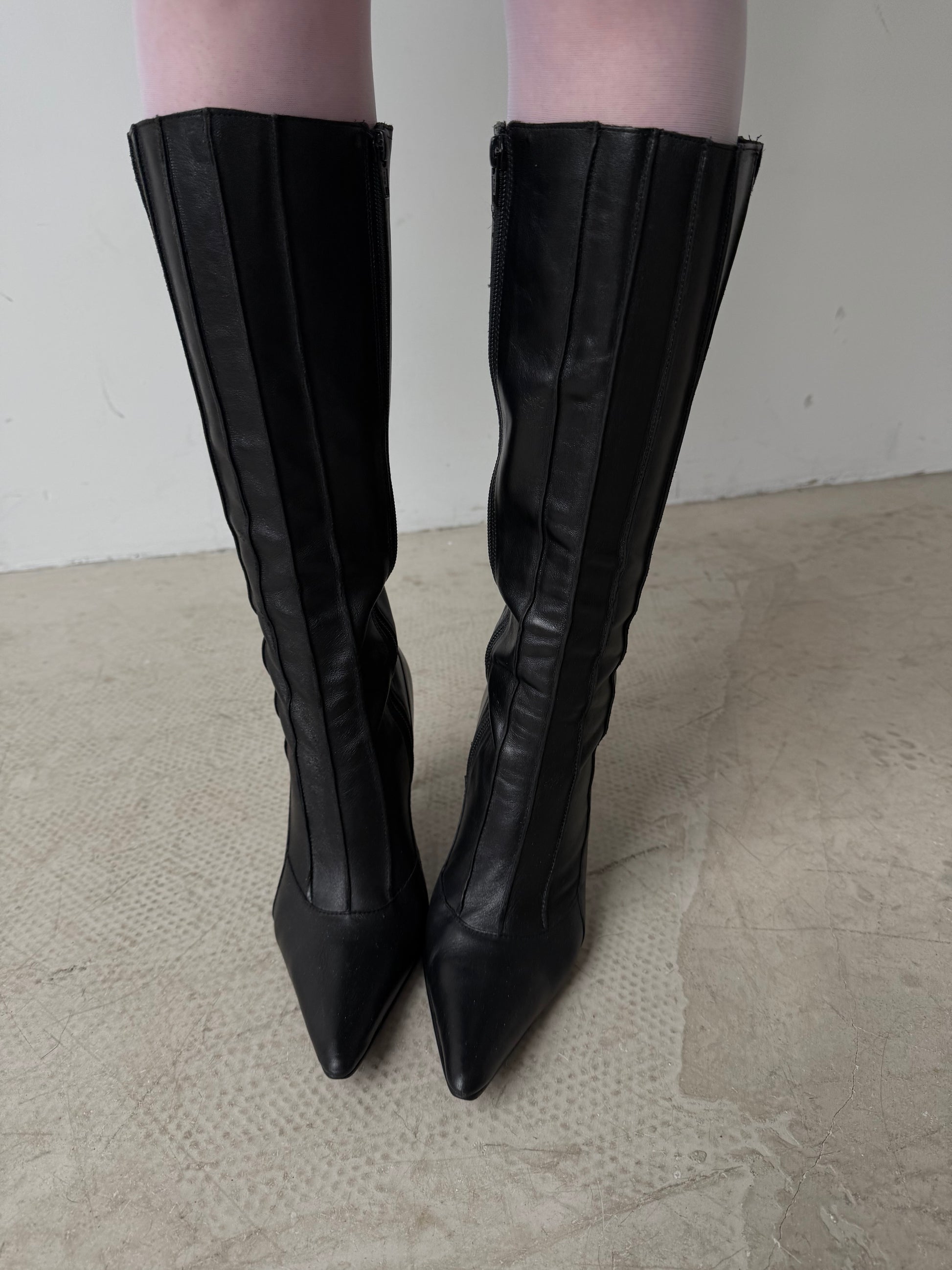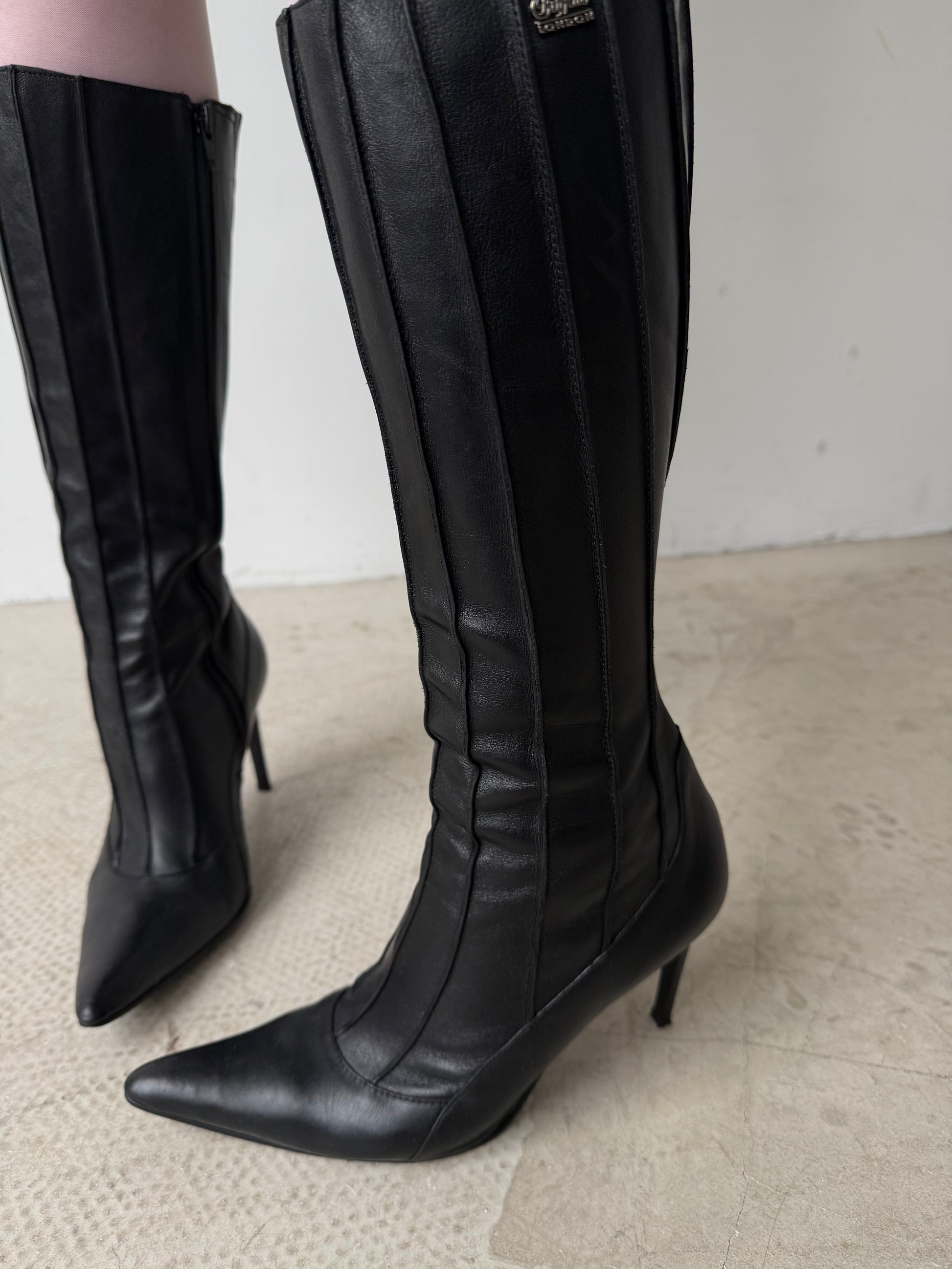 Vintage black leather Buffalo knee-high boots with stiletto heel TWINKLING GLOBAL
