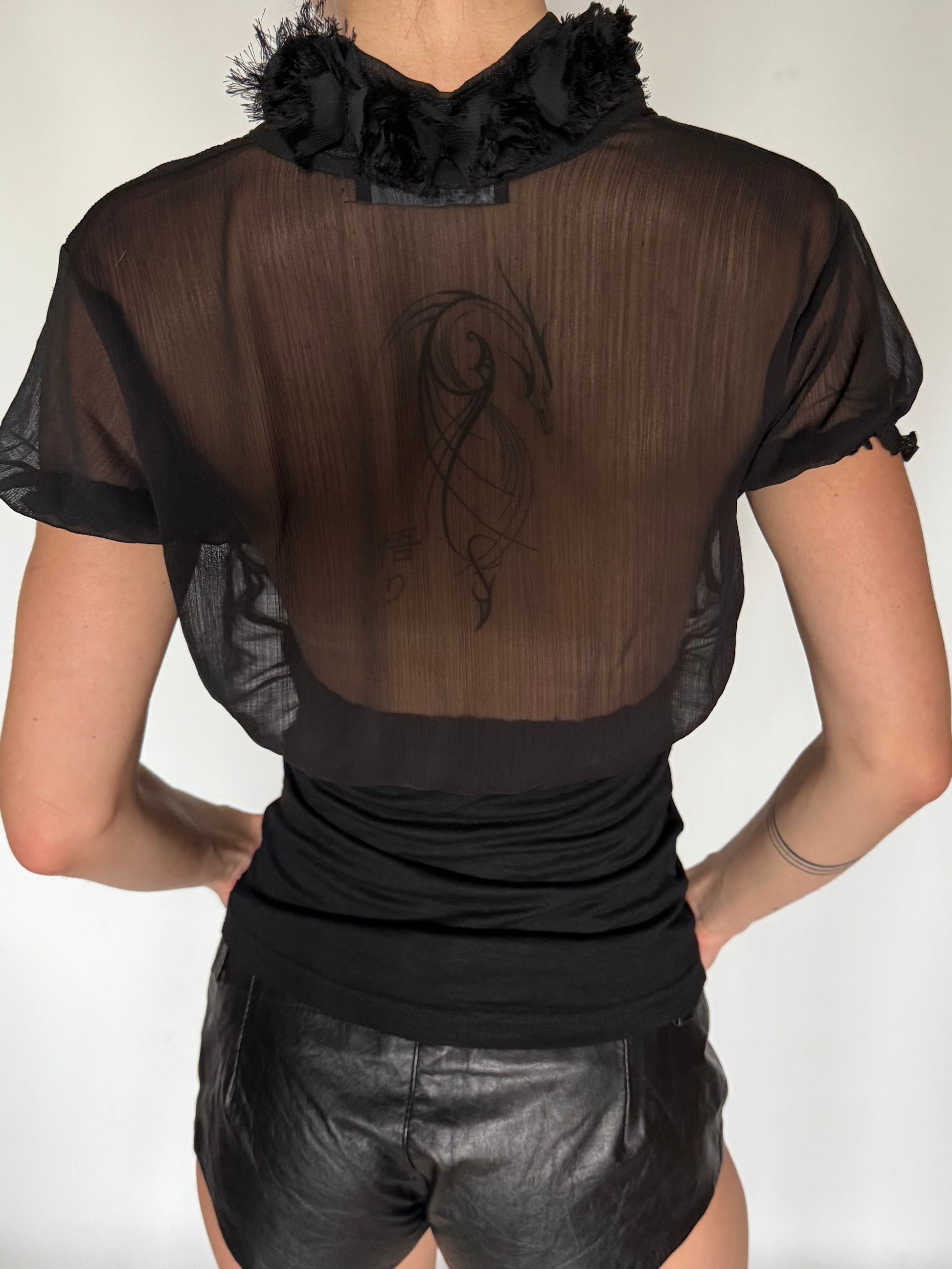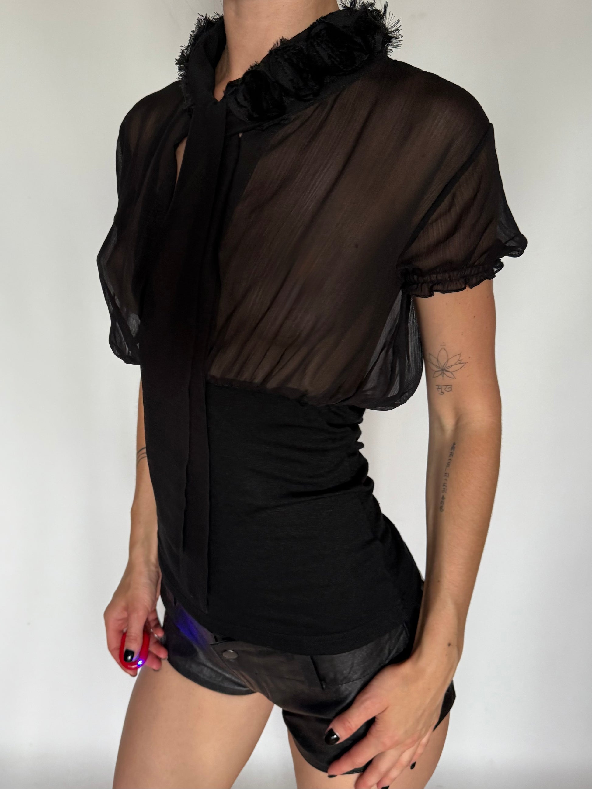 Vintage Sheer Tie-Neck Blouse Black Twinkling Global