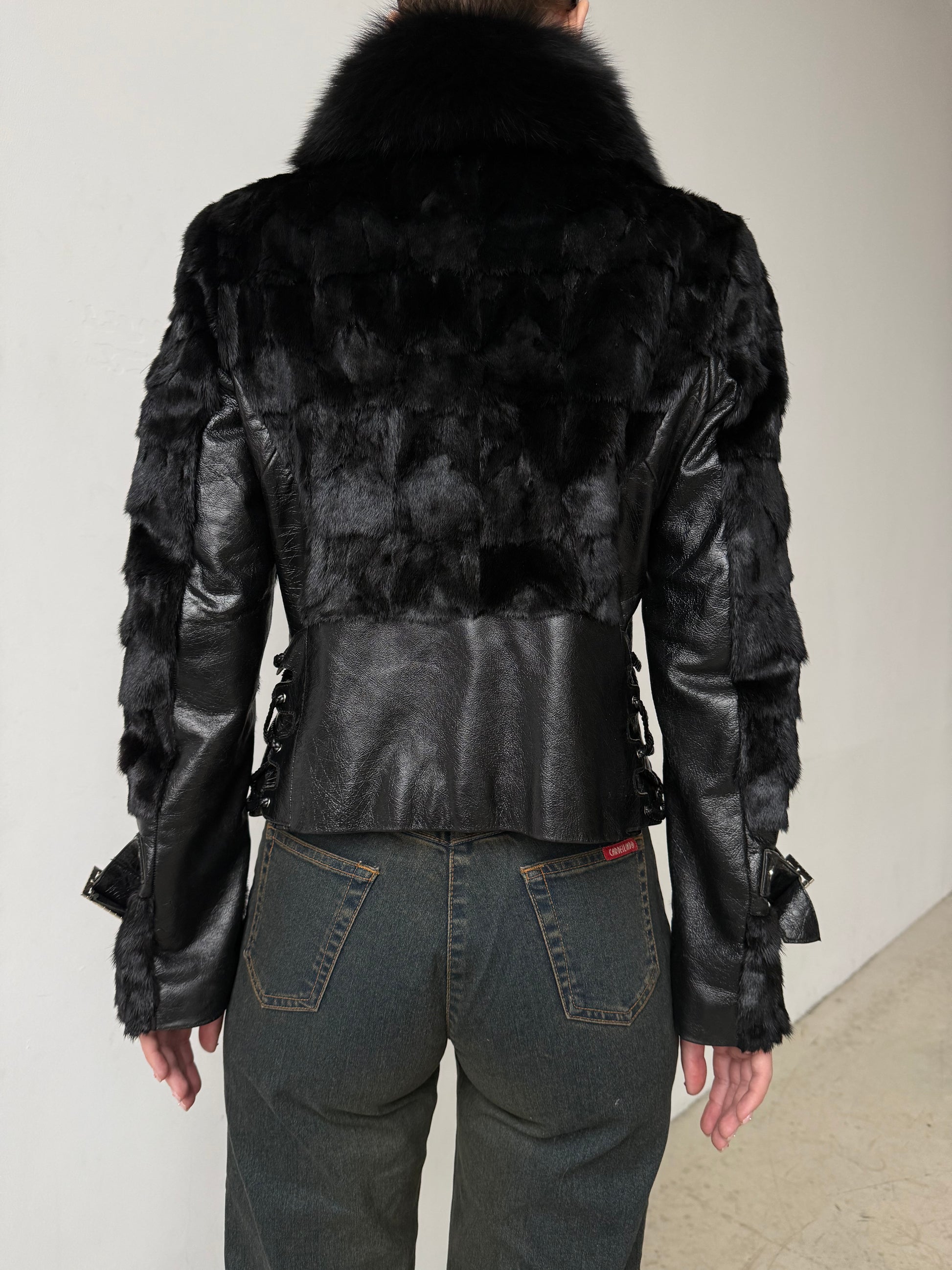 Vintage Leather & Real Fur Lace-Up Jacket TWINKLING GLOBAL