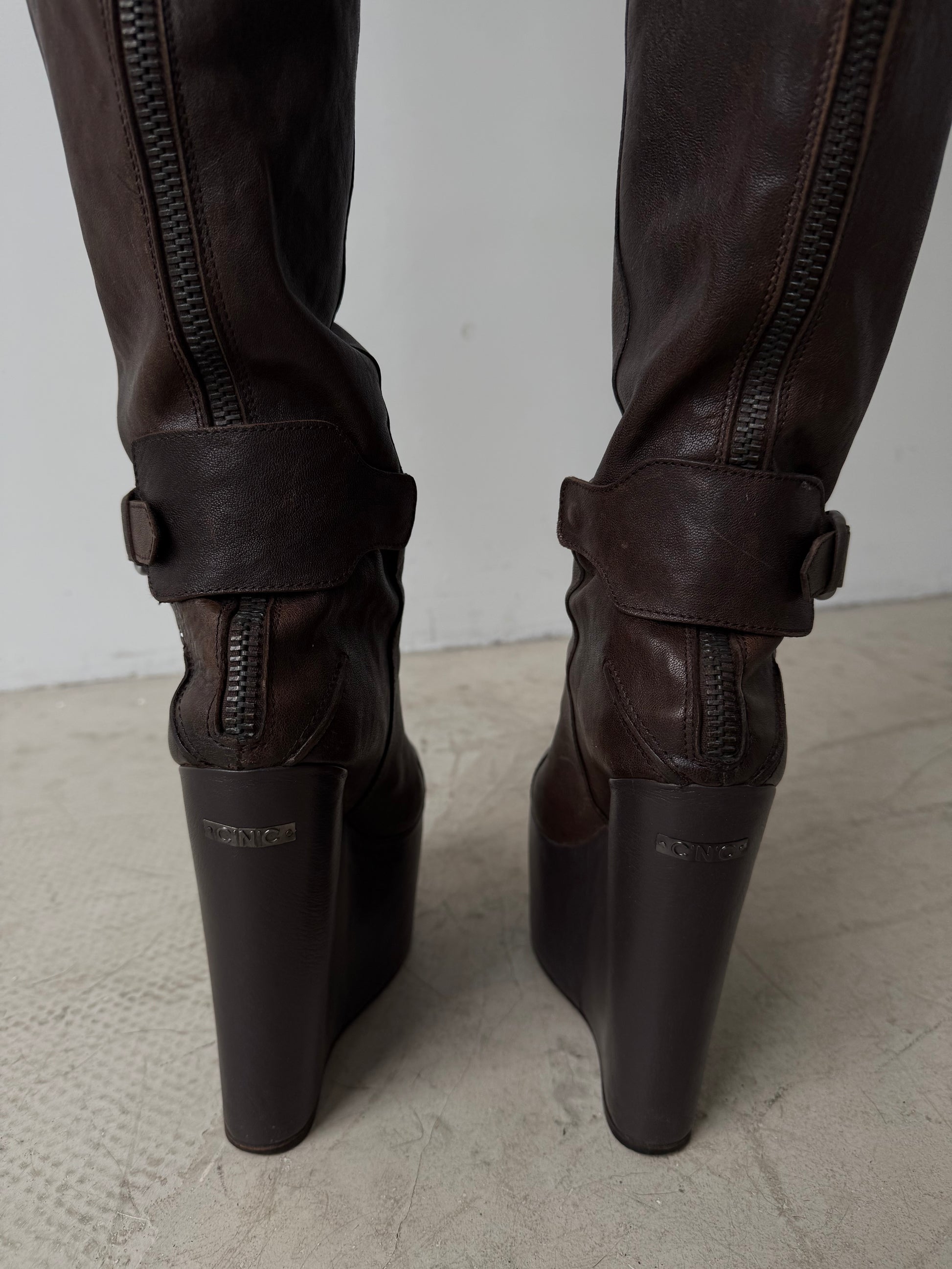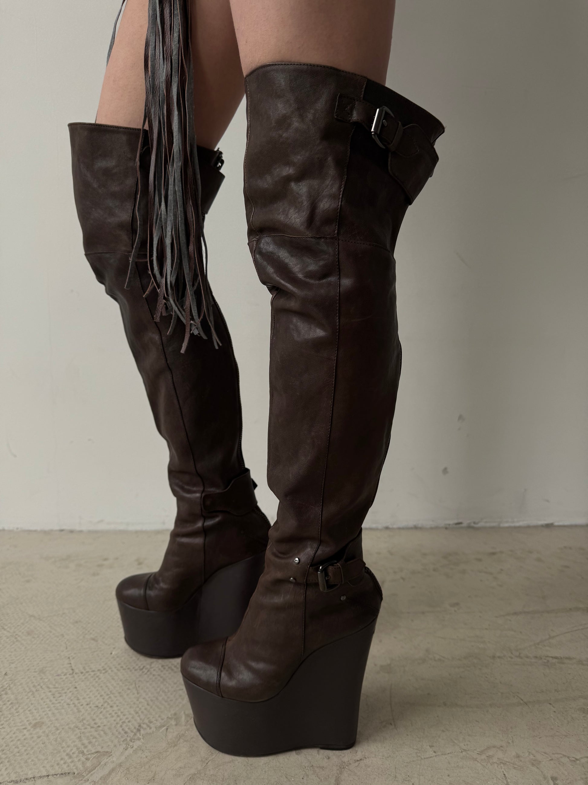 Vintage leather wedge over-the-knee boots CNC Made in Italy – TWINKLING GLOBAL