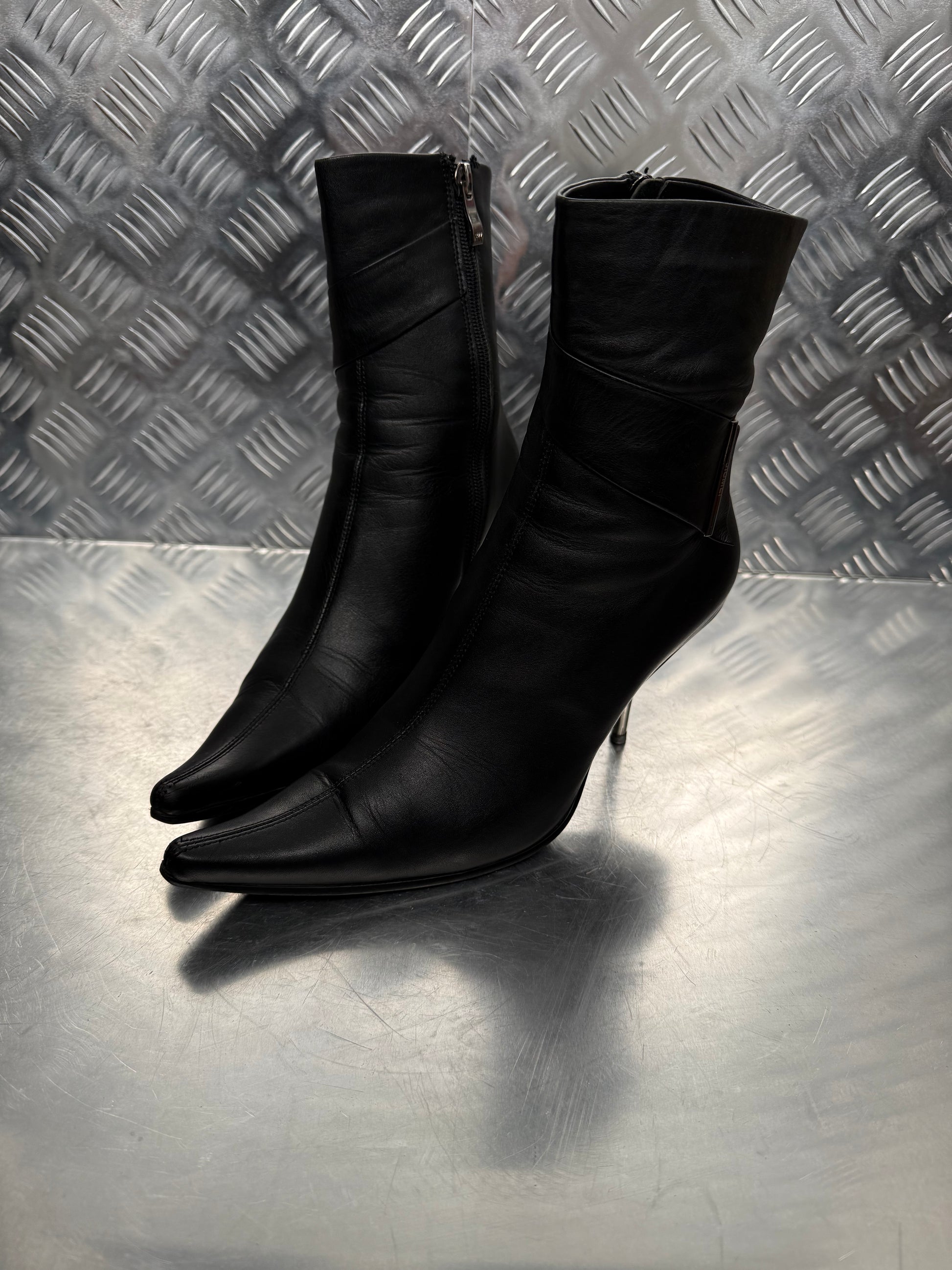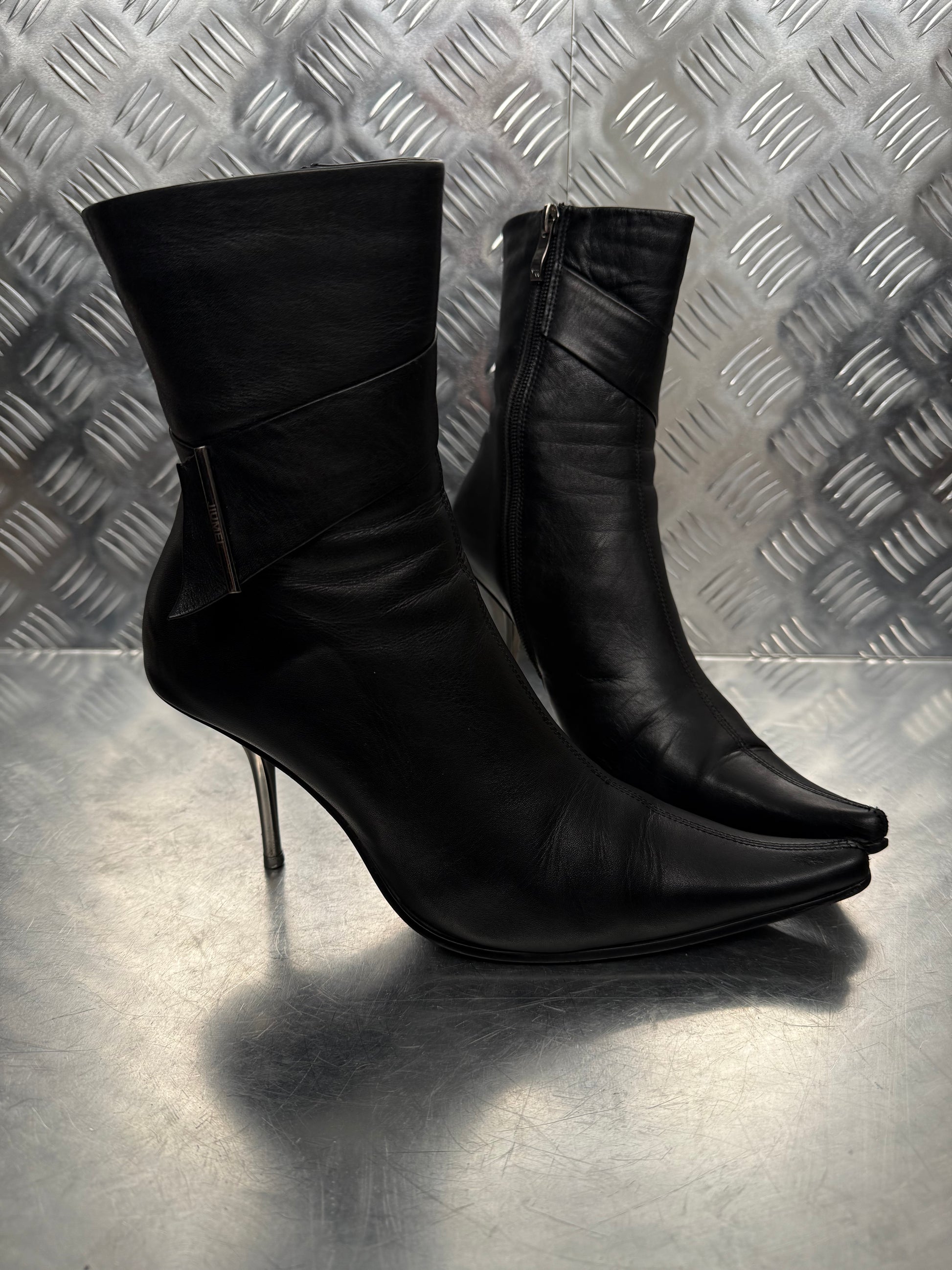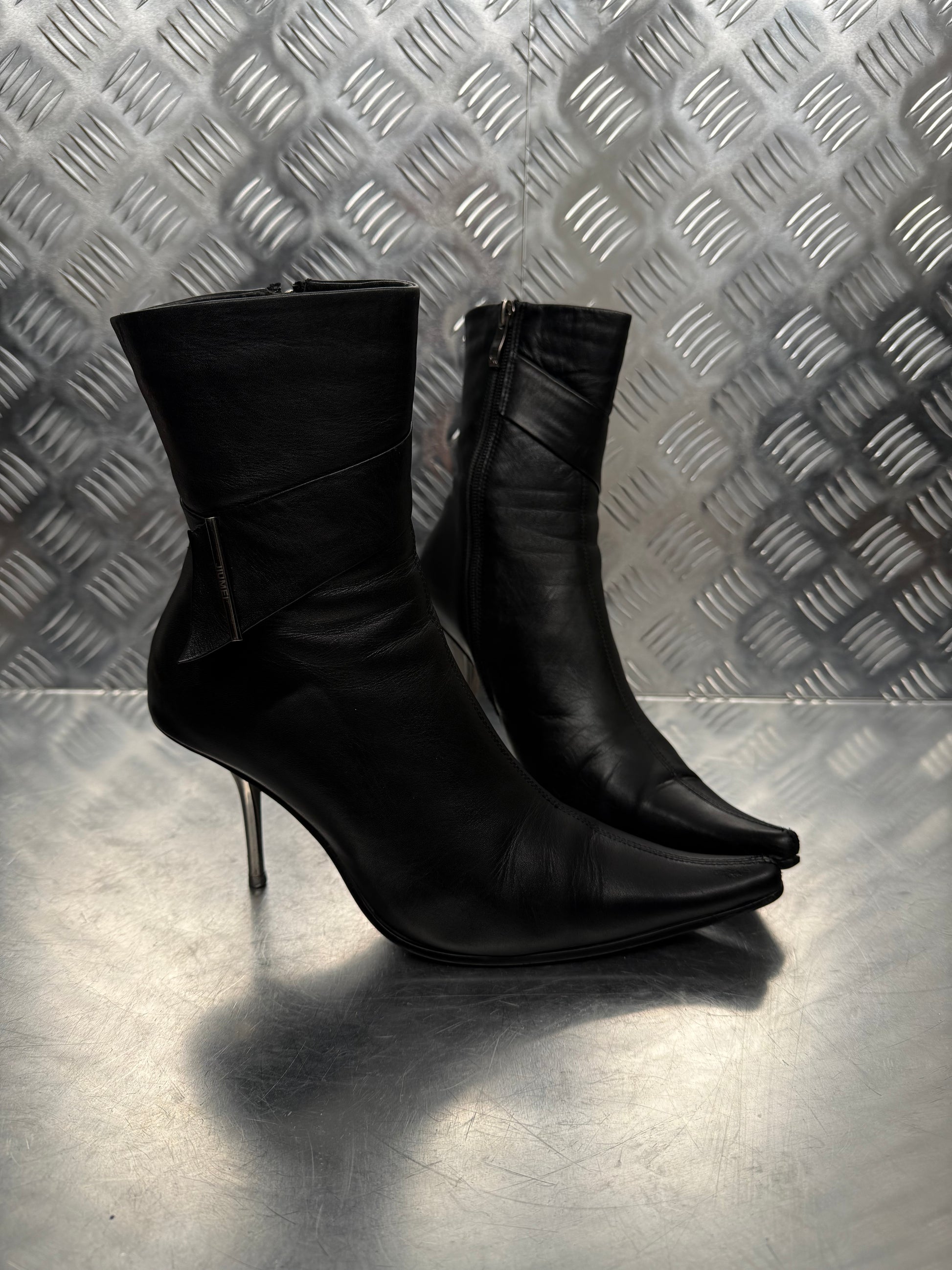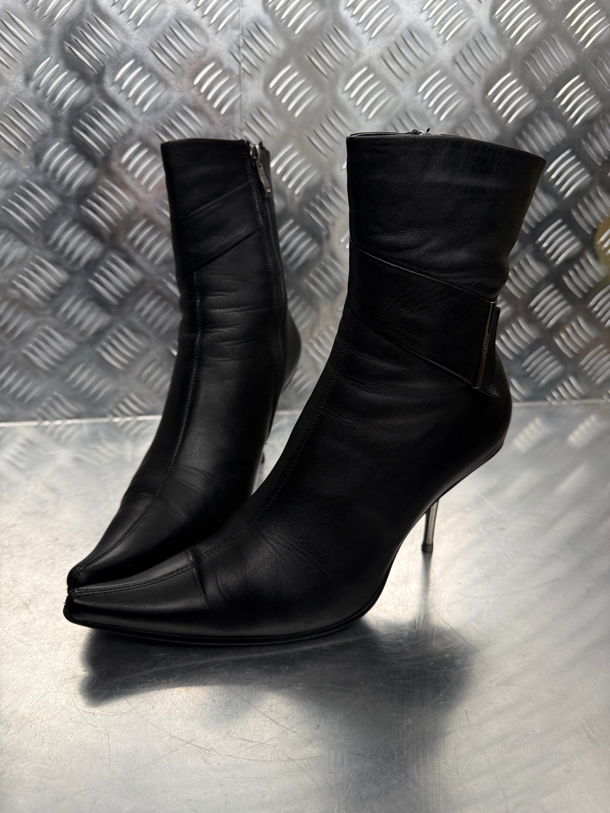 Vintage Italian leather ankle boots with metal stiletto heel TWINKLING GLOBAL