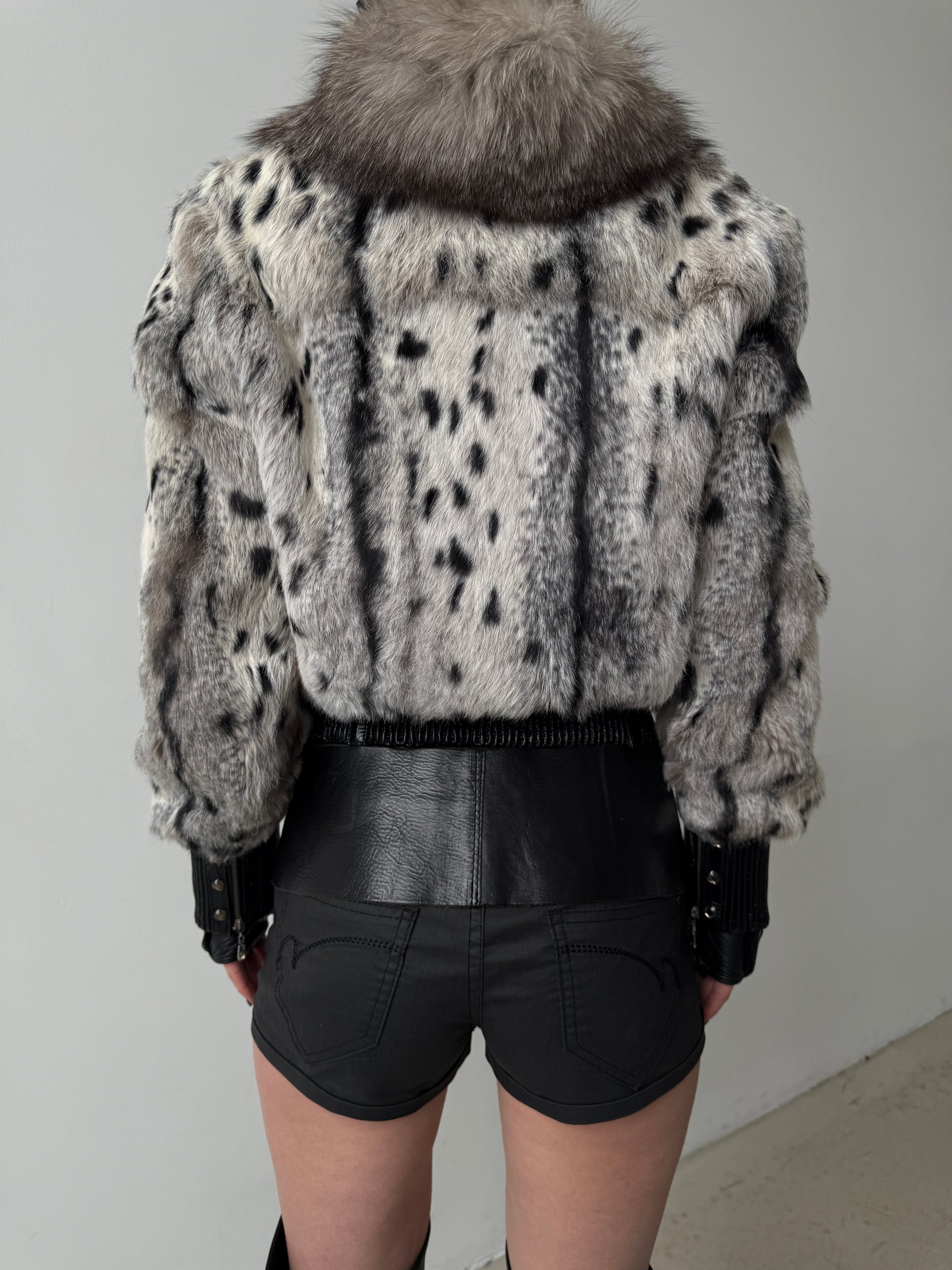 Vintage leather jacket with natural rabbit fur TWINKLING GLOBAL