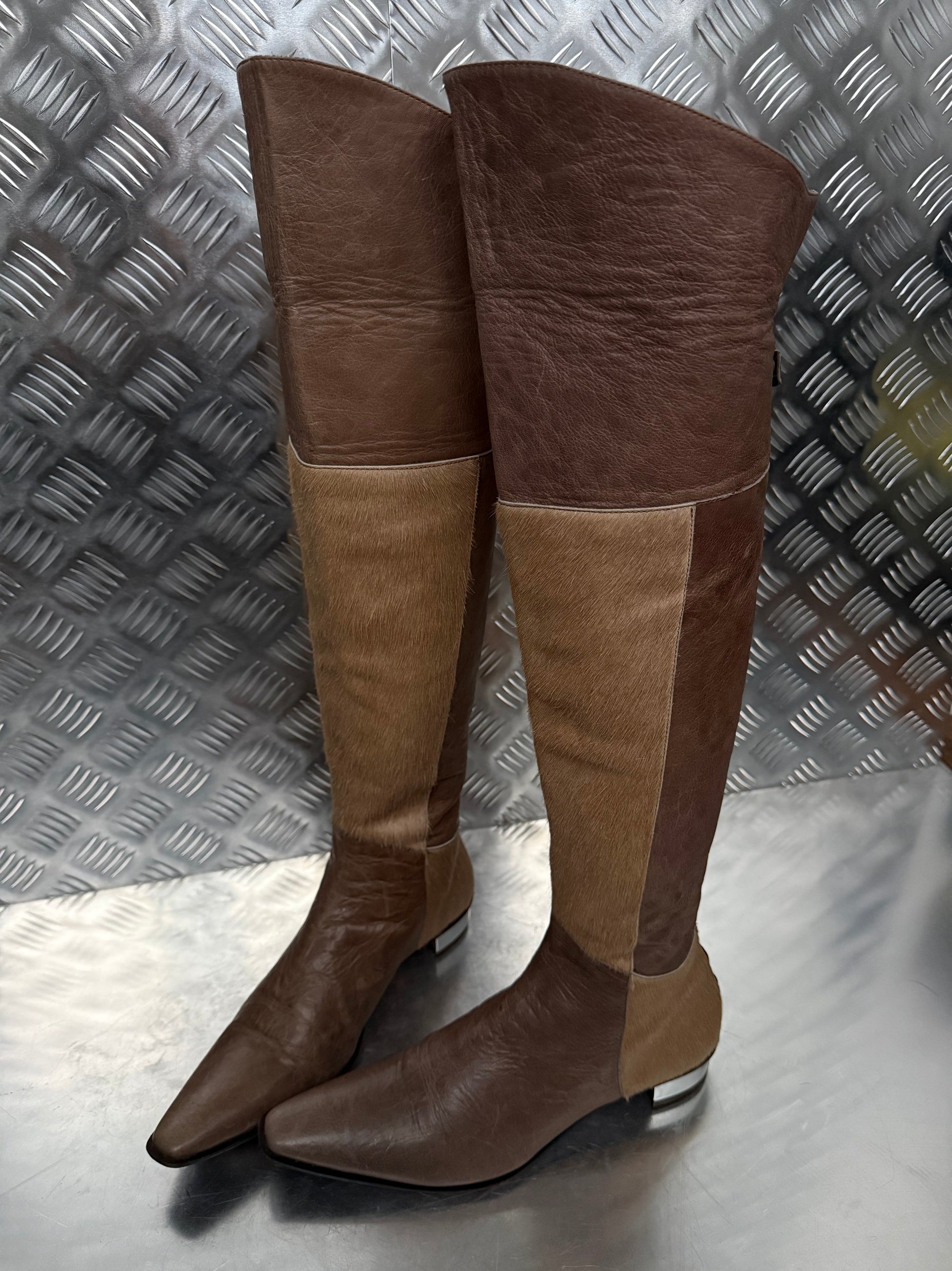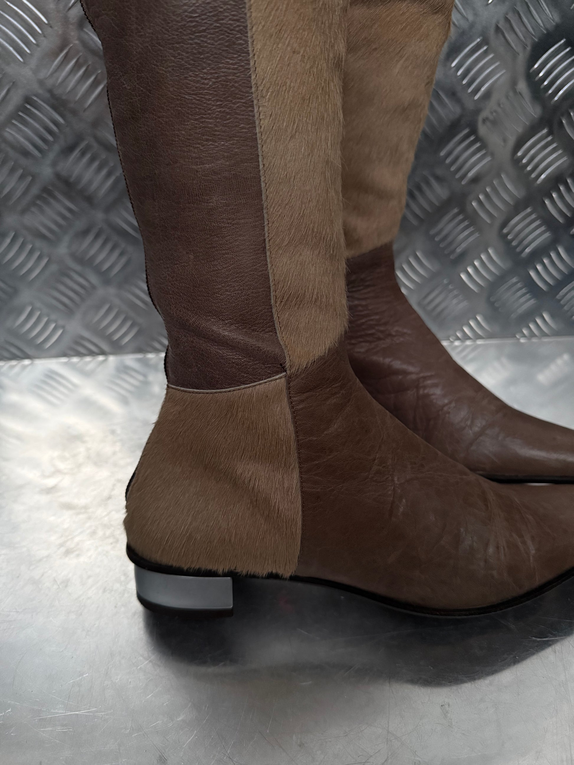Vintage leather and pony fur over-the-knee boots Andrea Lattanzi TWINKLING GLOBAL