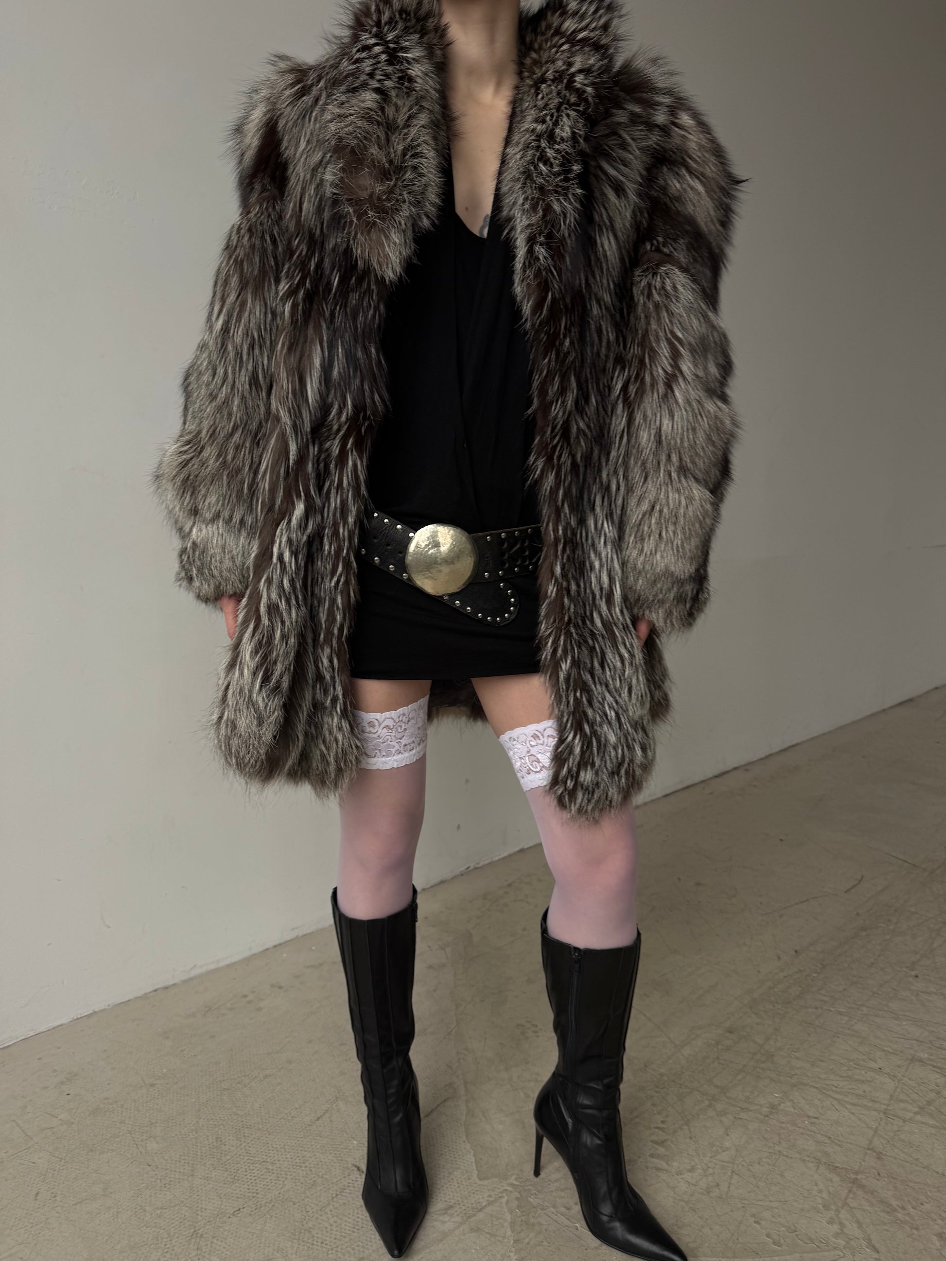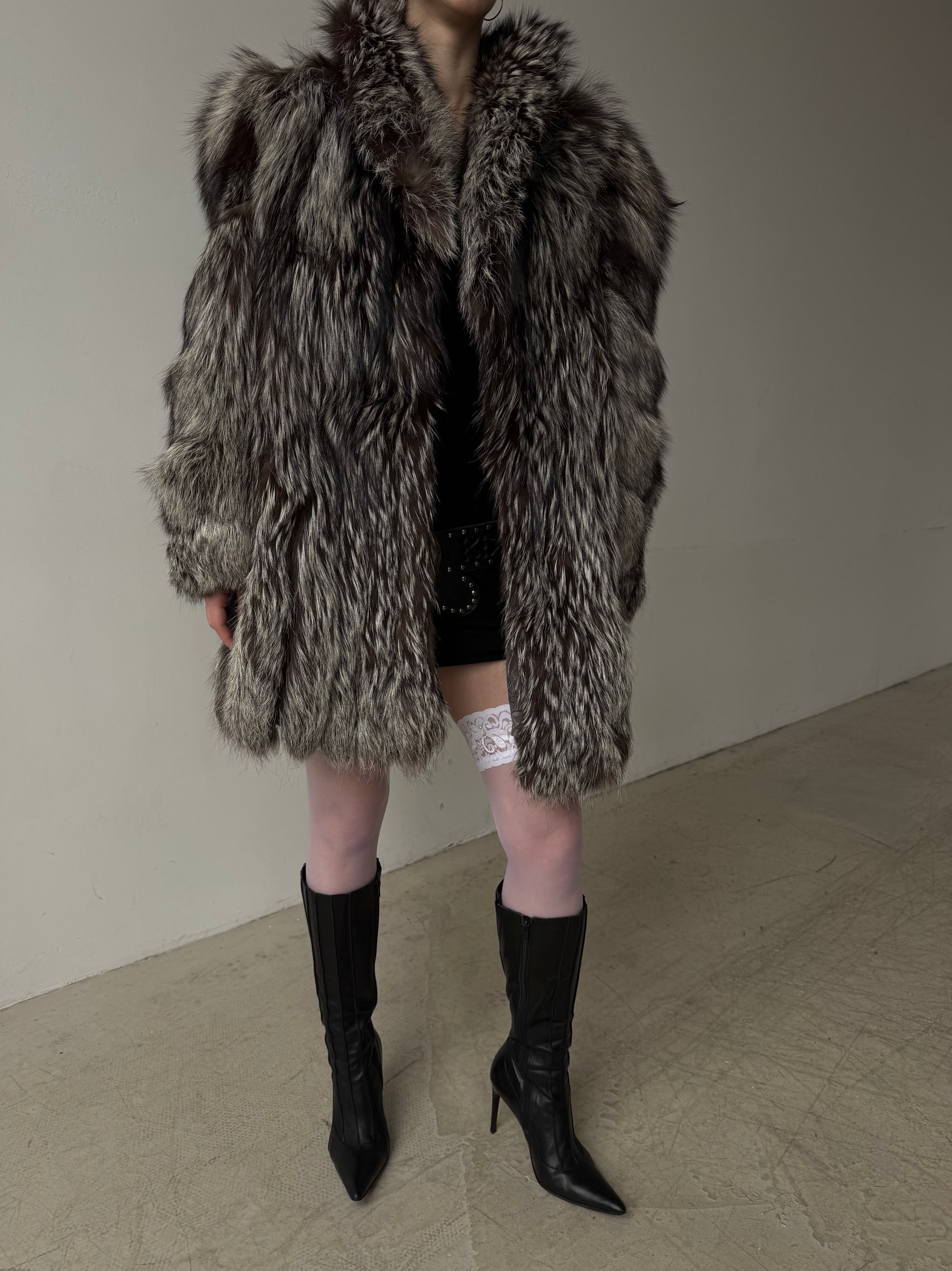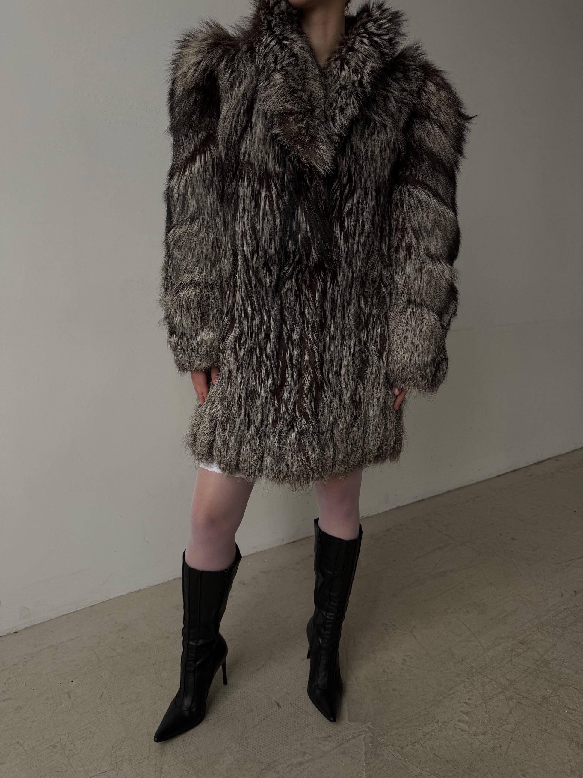 Vintage silver fox fur coat TWINKLING GLOBAL