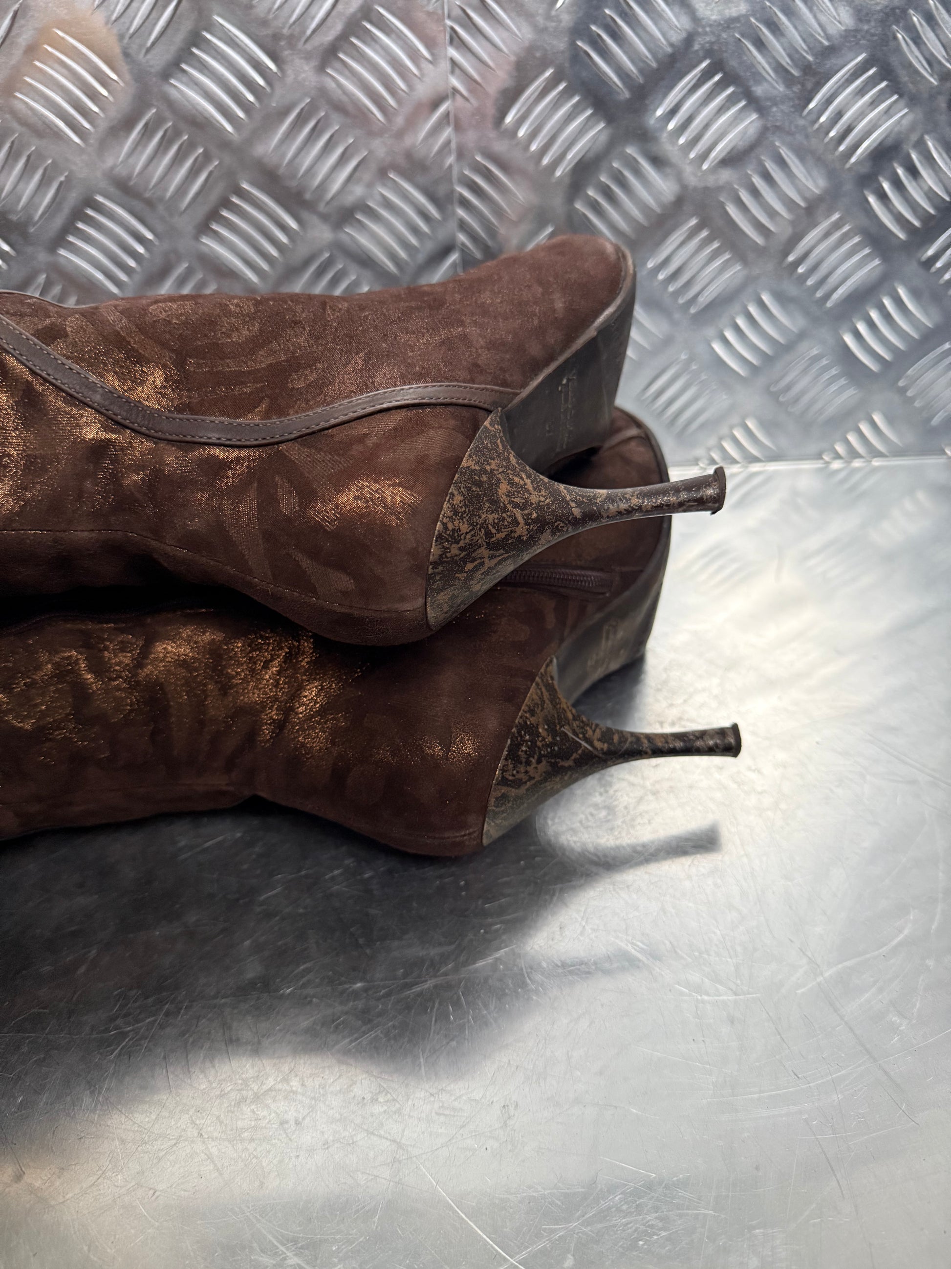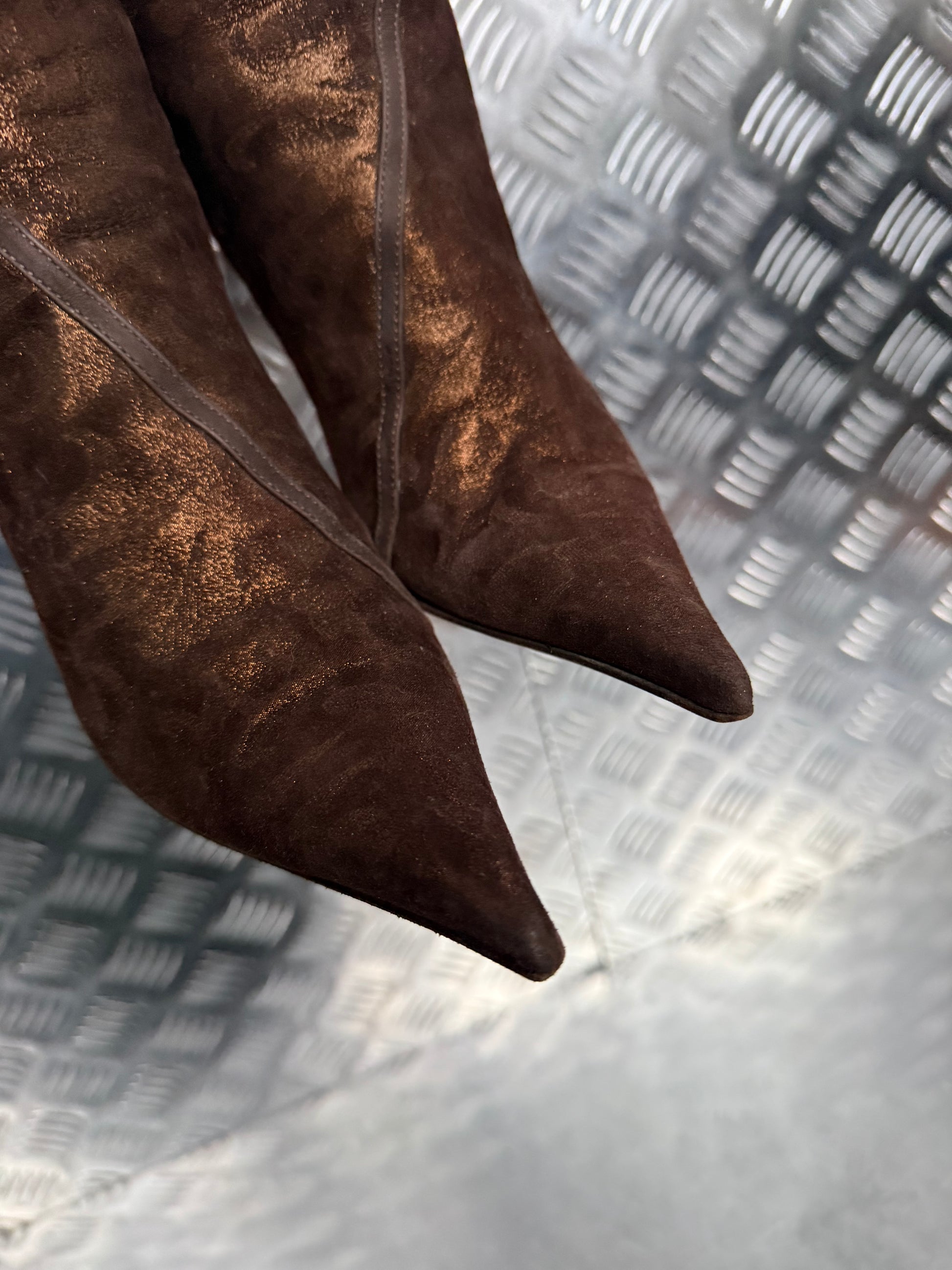 Italian Brown Suede Heeled Boots with Real Fur TWINKLING GLOBAL