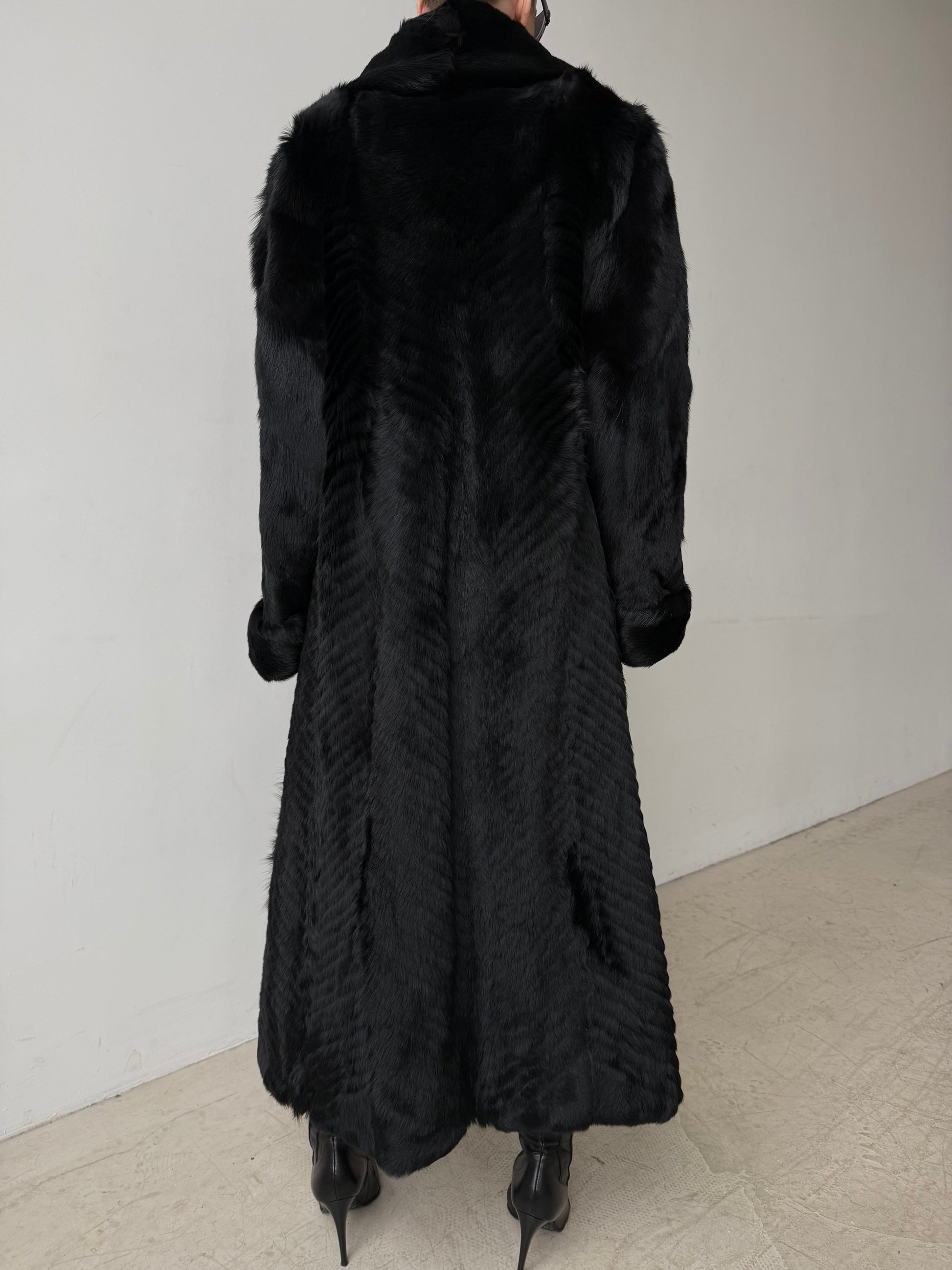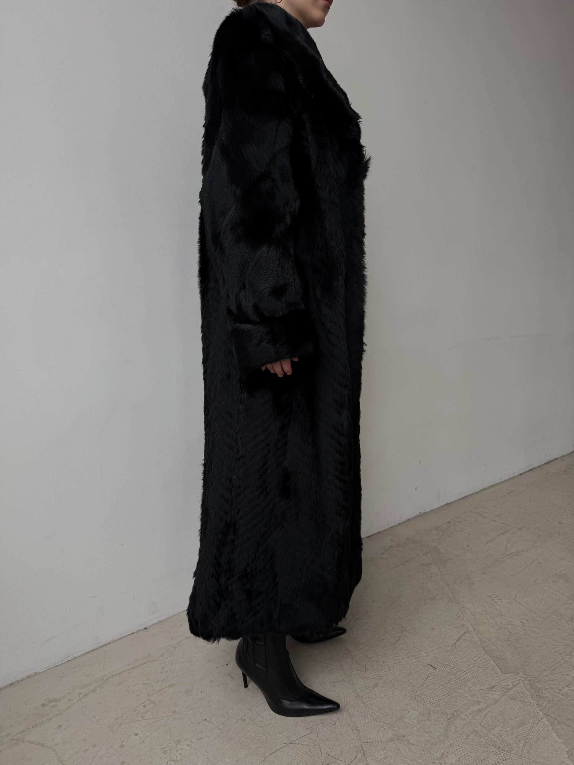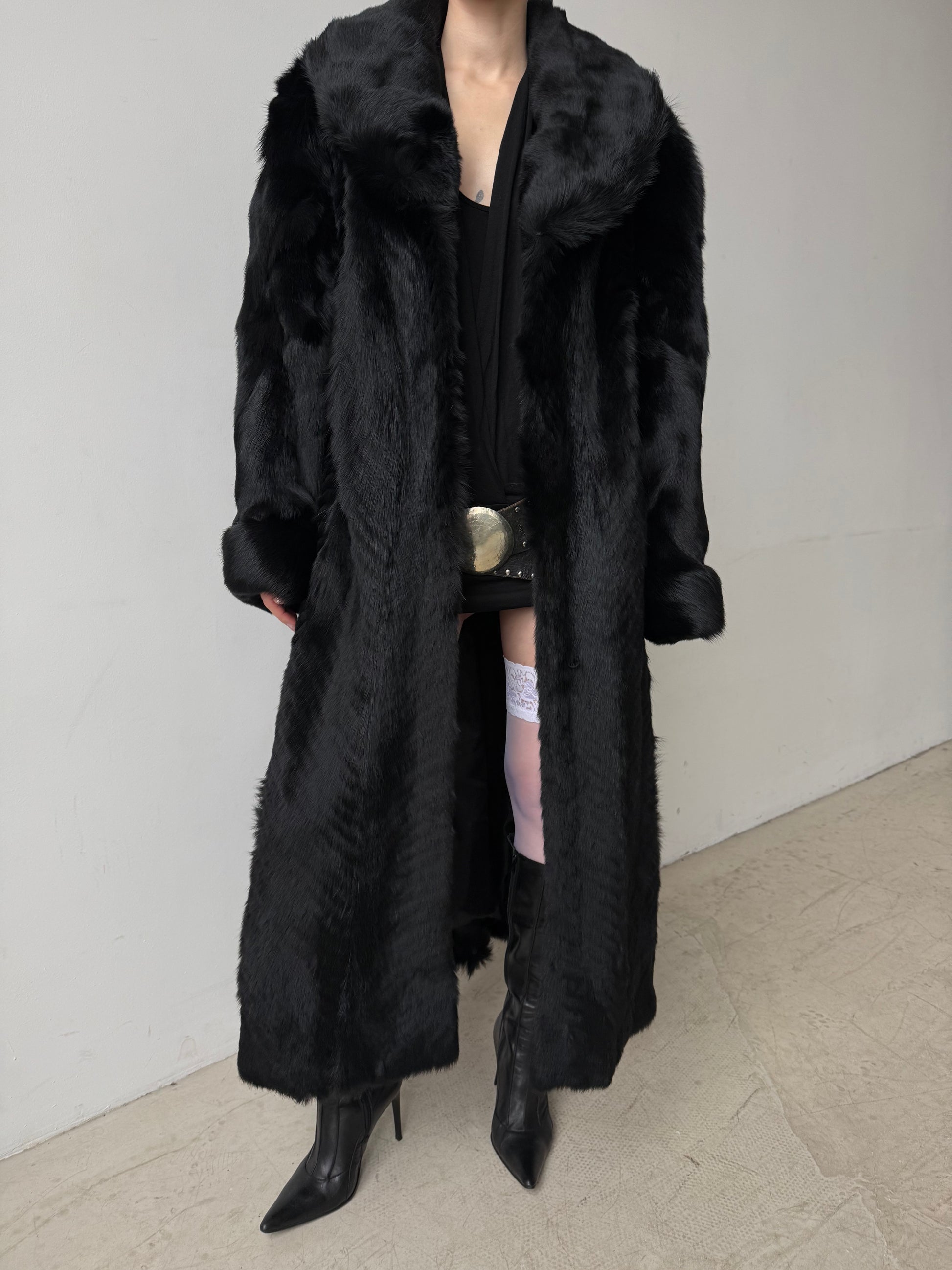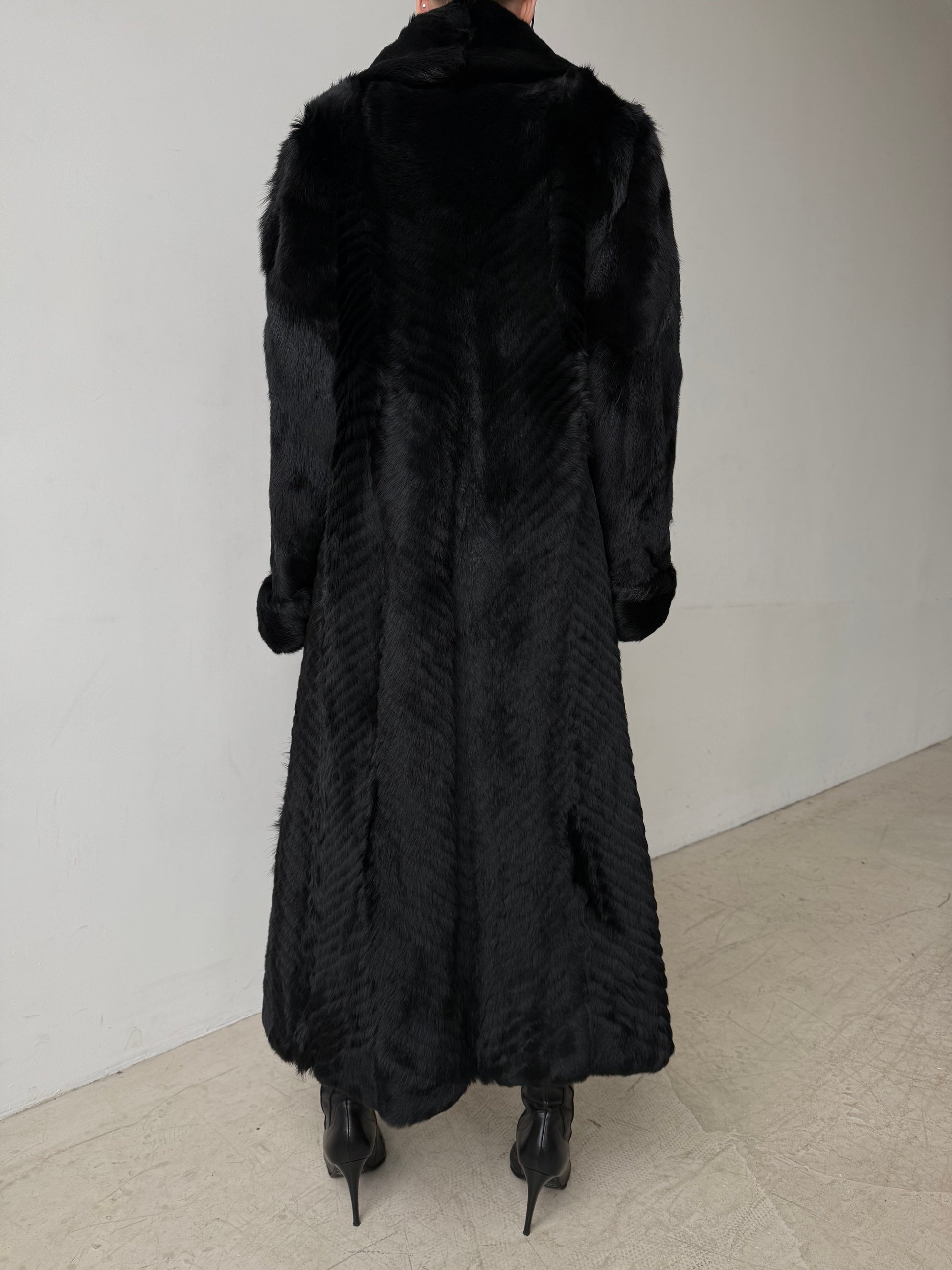 Elegant and rare vintage coat crafted from genuine wolf fur in deep black. Features an oversized collar, voluminous sleeves, and a floor-length cut. The coat is incredibly soft, warm, and lightweight. Designed to make a statement — perfect for layering and styling in winter looks. Excellent condition, well preserved.