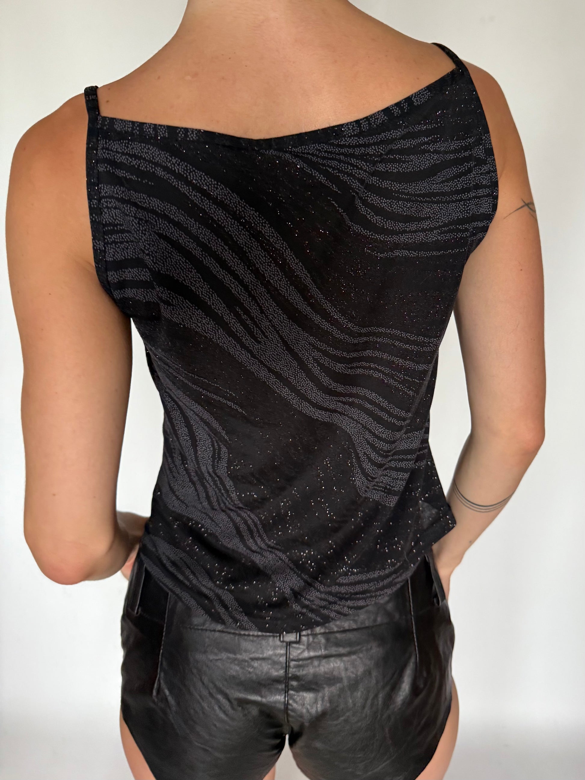 Vintage y2k Glitter Zebra Cowl Cami Twinkling Global