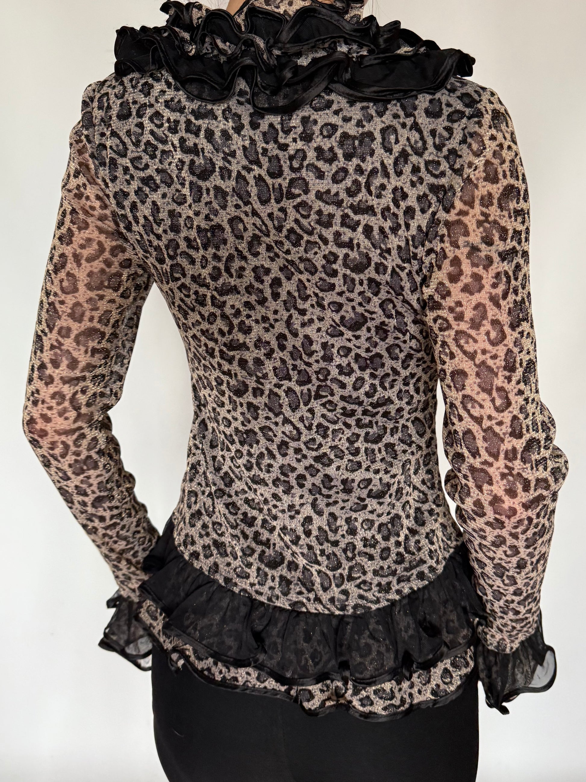 Vintage Leopard Ruffle Mesh Peplum Blouse Twinkling Global