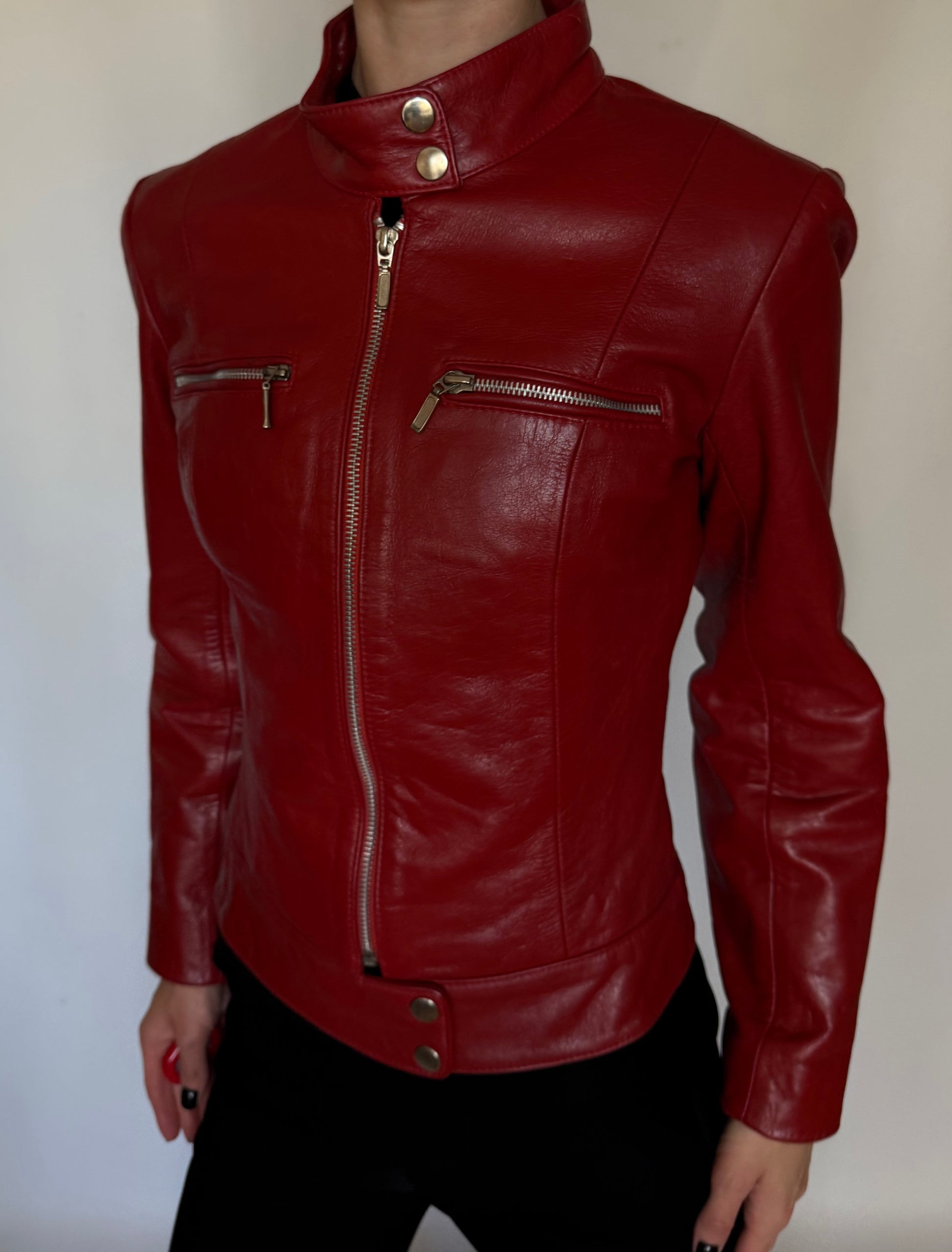 Classic vintage red genuine leather jacket in excellent condition.