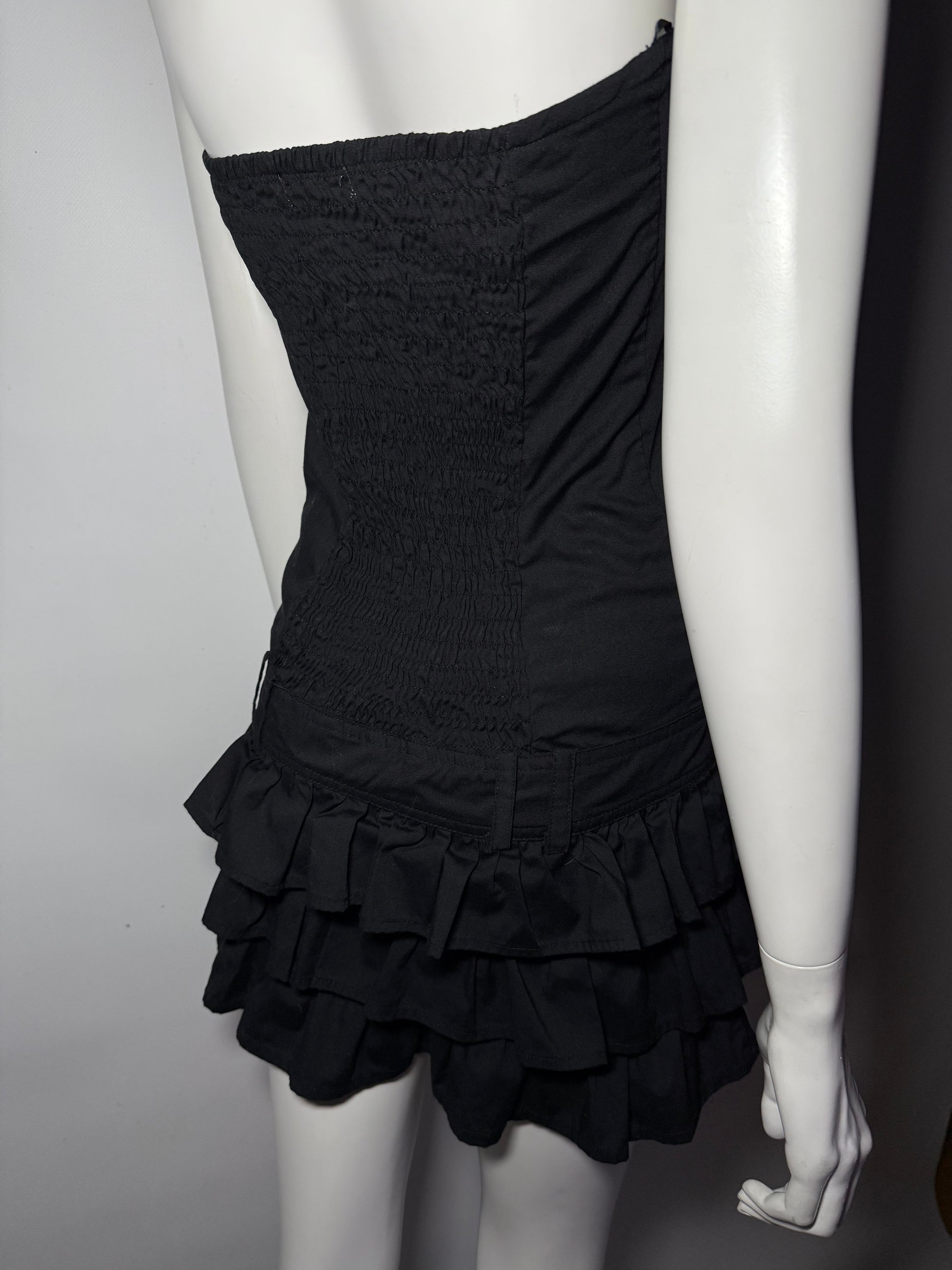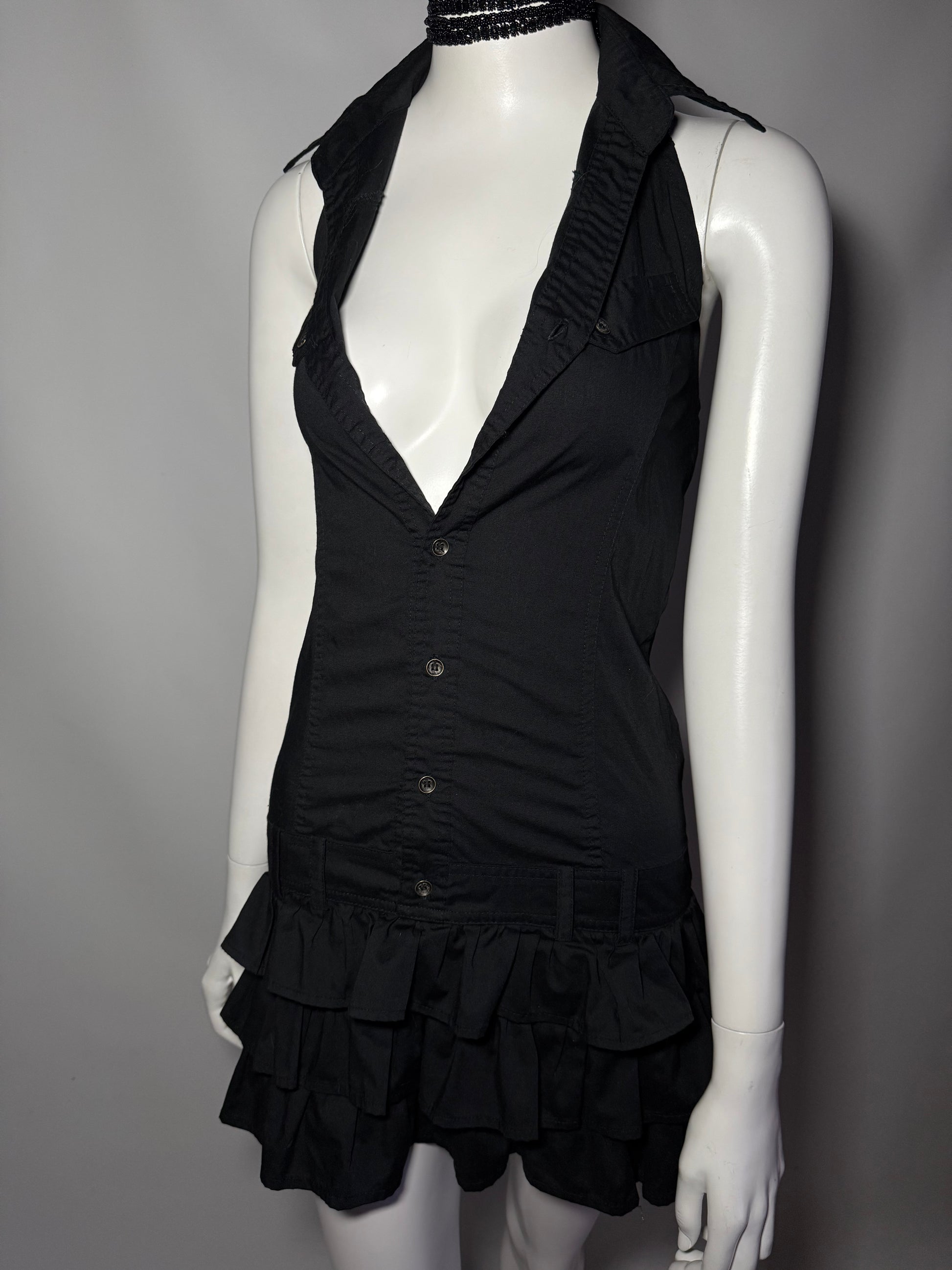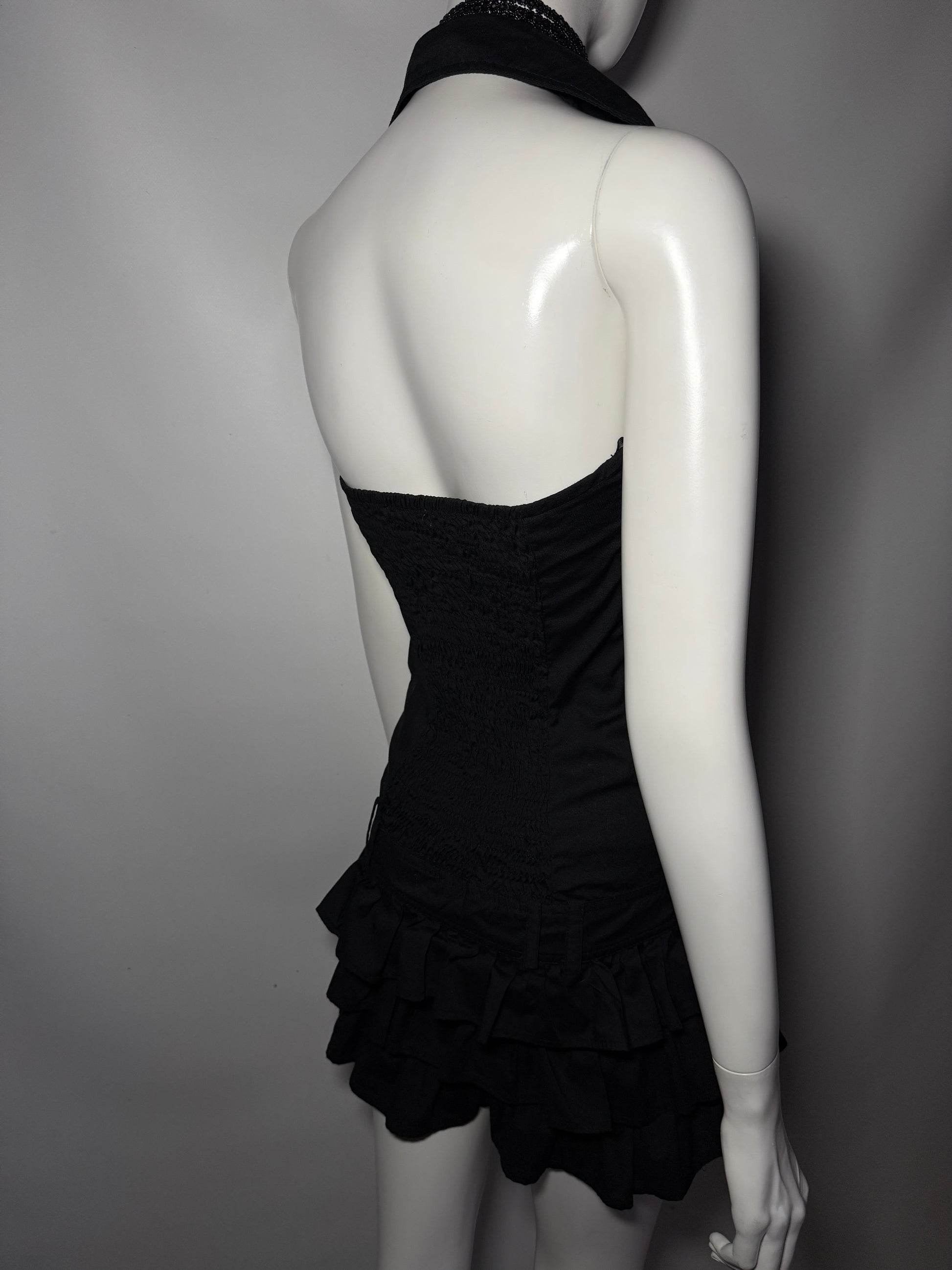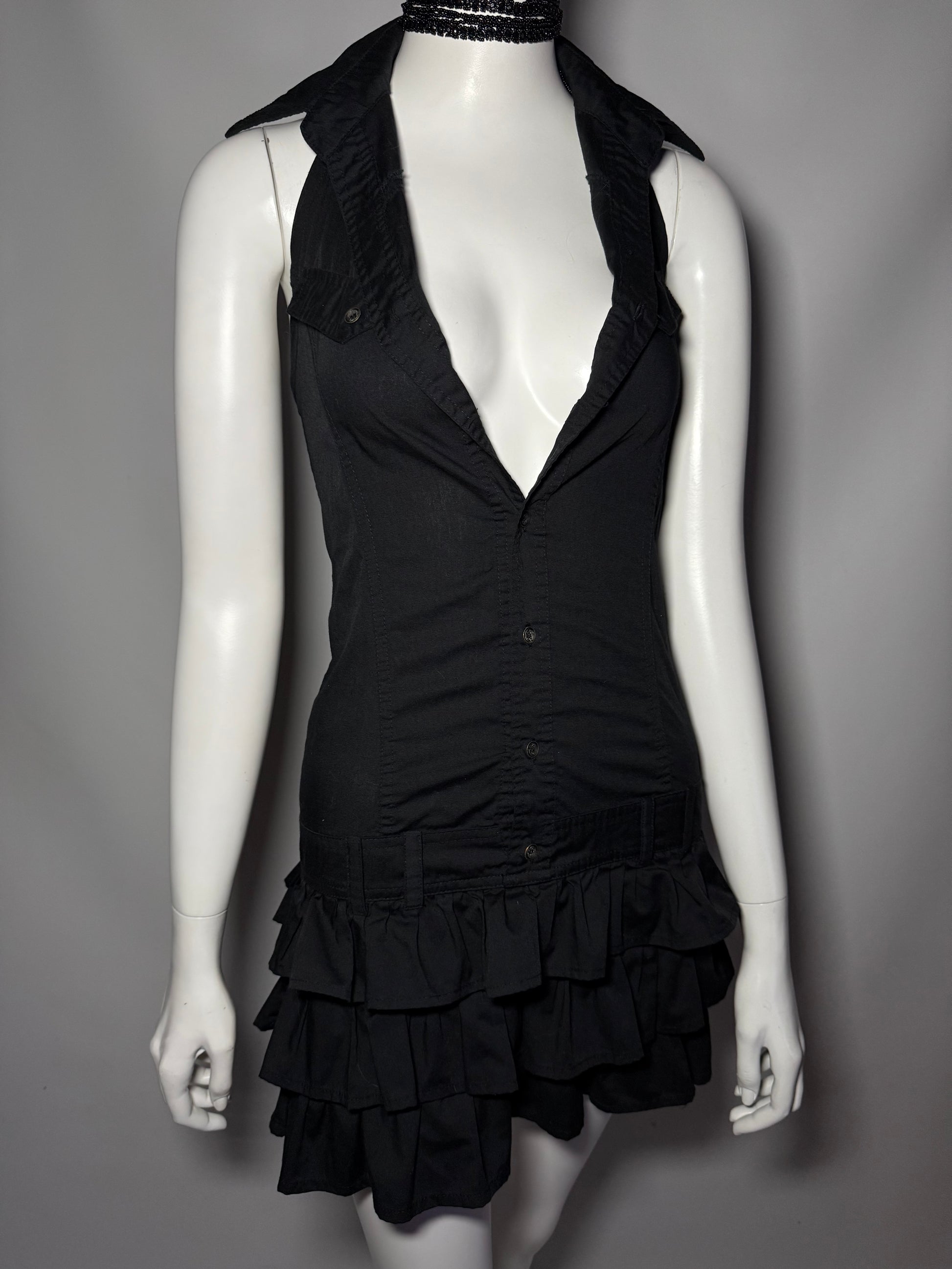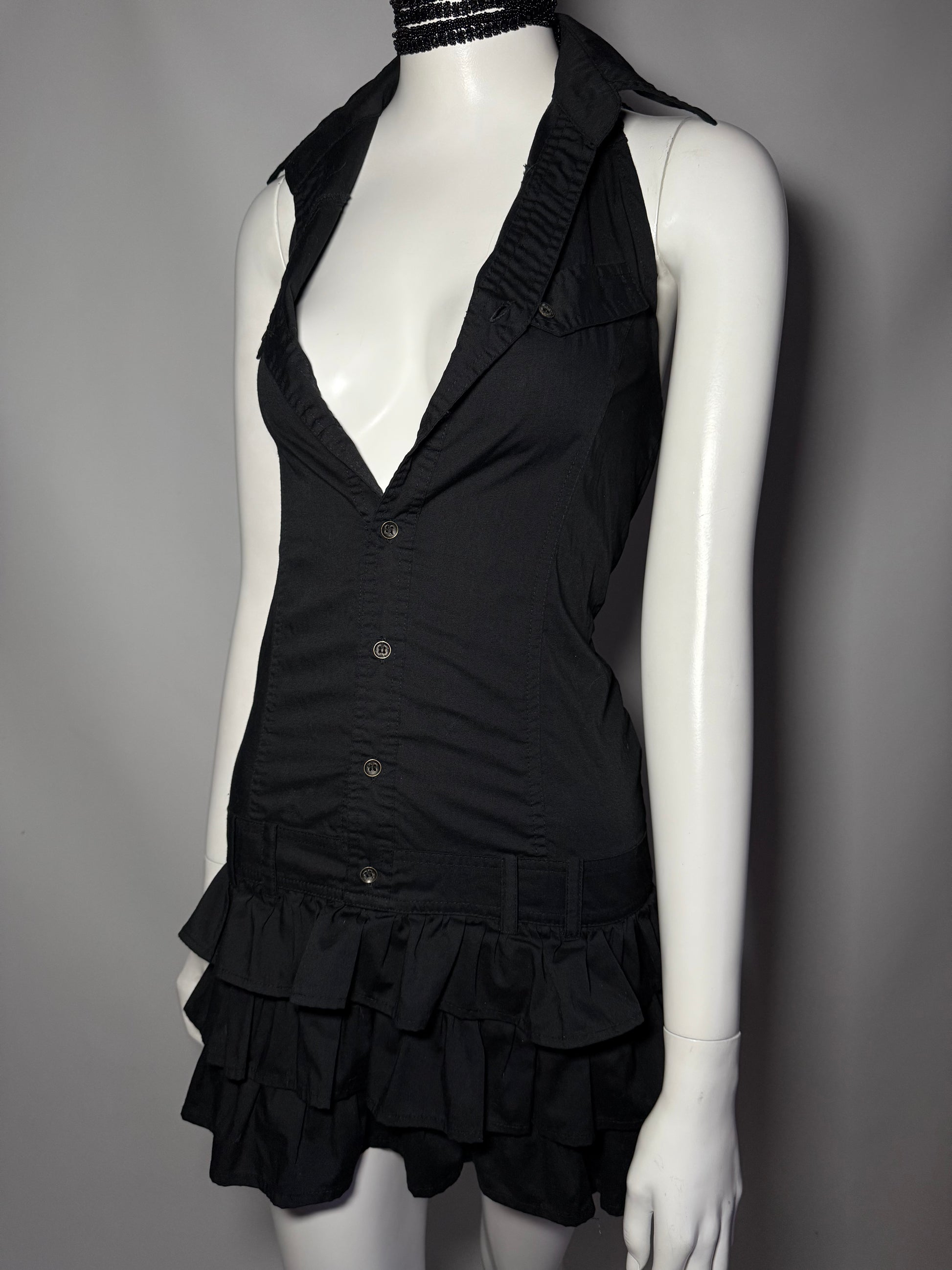 Y2K cotton mini dress with collar and ruffle skirt.